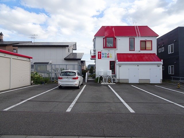 矢印(↑)の看板をつけておいたので通路を通って正面玄関に回ってください。(開業時に迷ったのですが北玄関が嫌なので病院正面玄関は南向きです。)